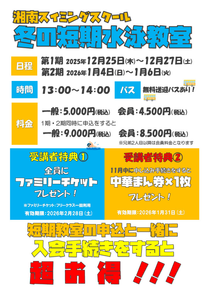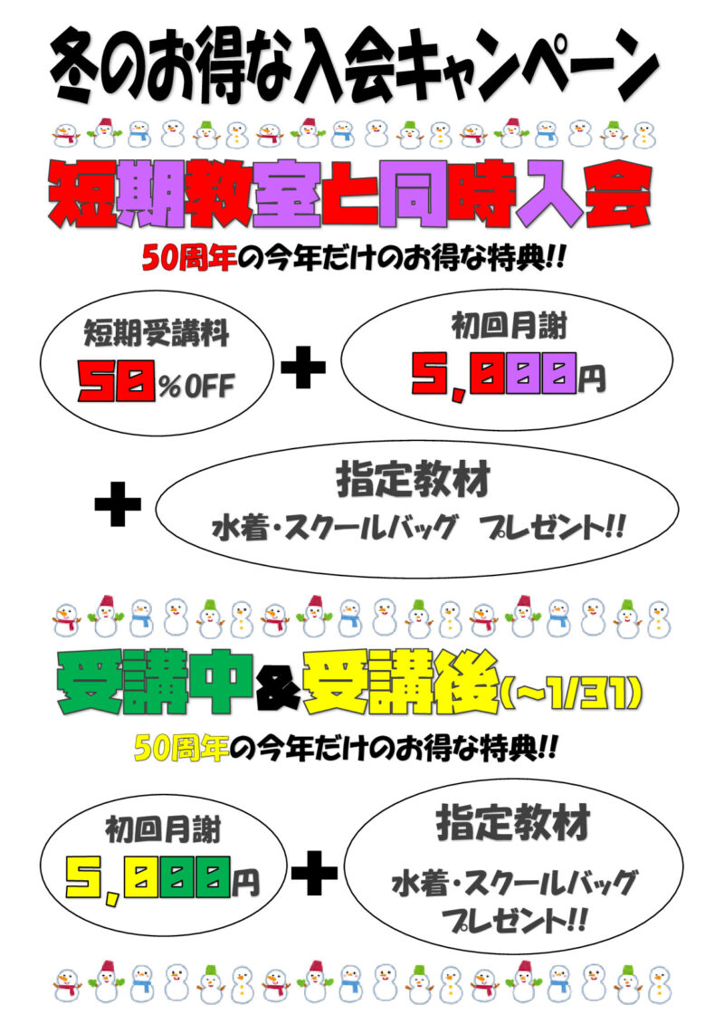 ホーム » 冬の短期水泳教室 及び 入会特典のお知らせ♪