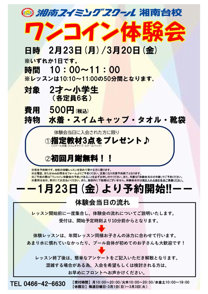 ワンコイン体験会を開催いたします!