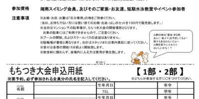 湘南台校からのお知らせ ホーム » 湘南スイミングスクール湘南台校 » 湘南台校からのお知らせ ワンコイン体験会のお知らせ♪ 2026年1月13日 餅つき大会のお知らせ 2026年1月4日 ★★冬の子育て応援キャンペーン★★(ベビークラス) 2025年10月27日 【ご案内】スクールバスの運行に関して 2025年2月4日 【ご案内】駐車場の場所に関して 2024年10月4日 【ご案内】団体利用に関して 2024年10月4日 【お願い】ロッカーの利用に関して 2023年5月7日 【お願い】施設の利用に関して 2023年3月14日 料金・入会案内 こどもクラスのご紹介 おとなクラスのご紹介 Web入会・体験の予約 年間スケジュール 施設紹介 駐車場のご案内 バス路線案内 会員ギャラリー 会員専用ネットサービス