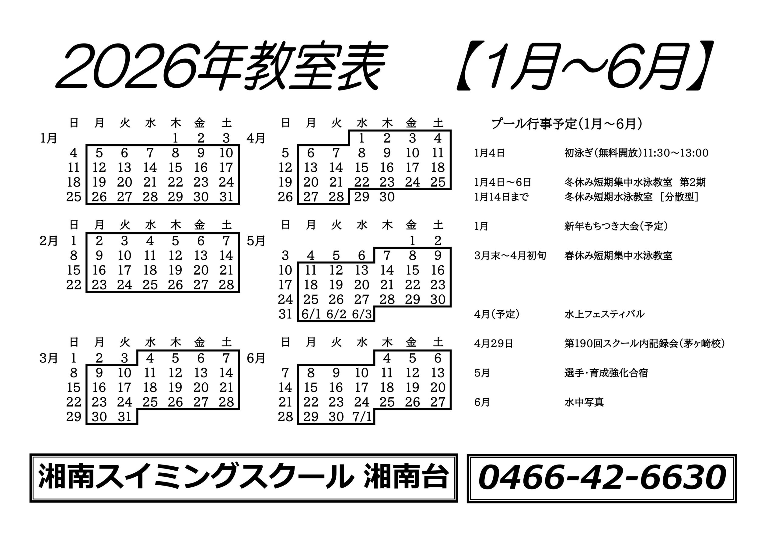 年間スケジュール ホーム » 湘南スイミングスクール湘南台校 » 年間スケジュール 【2026年前期】年間スケジュール(PDF)をダウンロード 【2025年後期】年間スケジュール(PDF)をダウンロード 料金・入会案内 こどもクラスのご紹介 おとなクラスのご紹介 Web入会・体験の予約 年間スケジュール 施設紹介 駐車場のご案内 バス路線案内 会員ギャラリー 会員専用ネットサービス